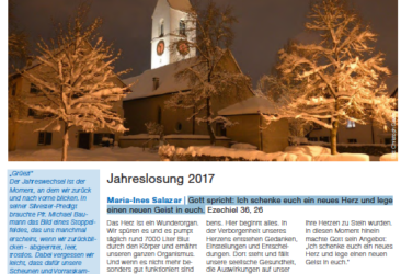 Editorial von Pfarrerin Maria-Ines Salazar: „Gott spricht: Ich schenke euch ein neues Herz und lege einen neuen Geist in euch.“ | Informationen aus der Kirchgemeinde | Jahresrückblick