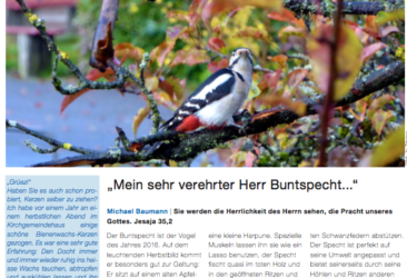 Editorial von Pfarrer Michael Baumann: „Mein sehr verehrter Herr Buntspecht…“ | Wie weiter im Prozess KirchGemeindePlus? | Kerzenziehen im November |